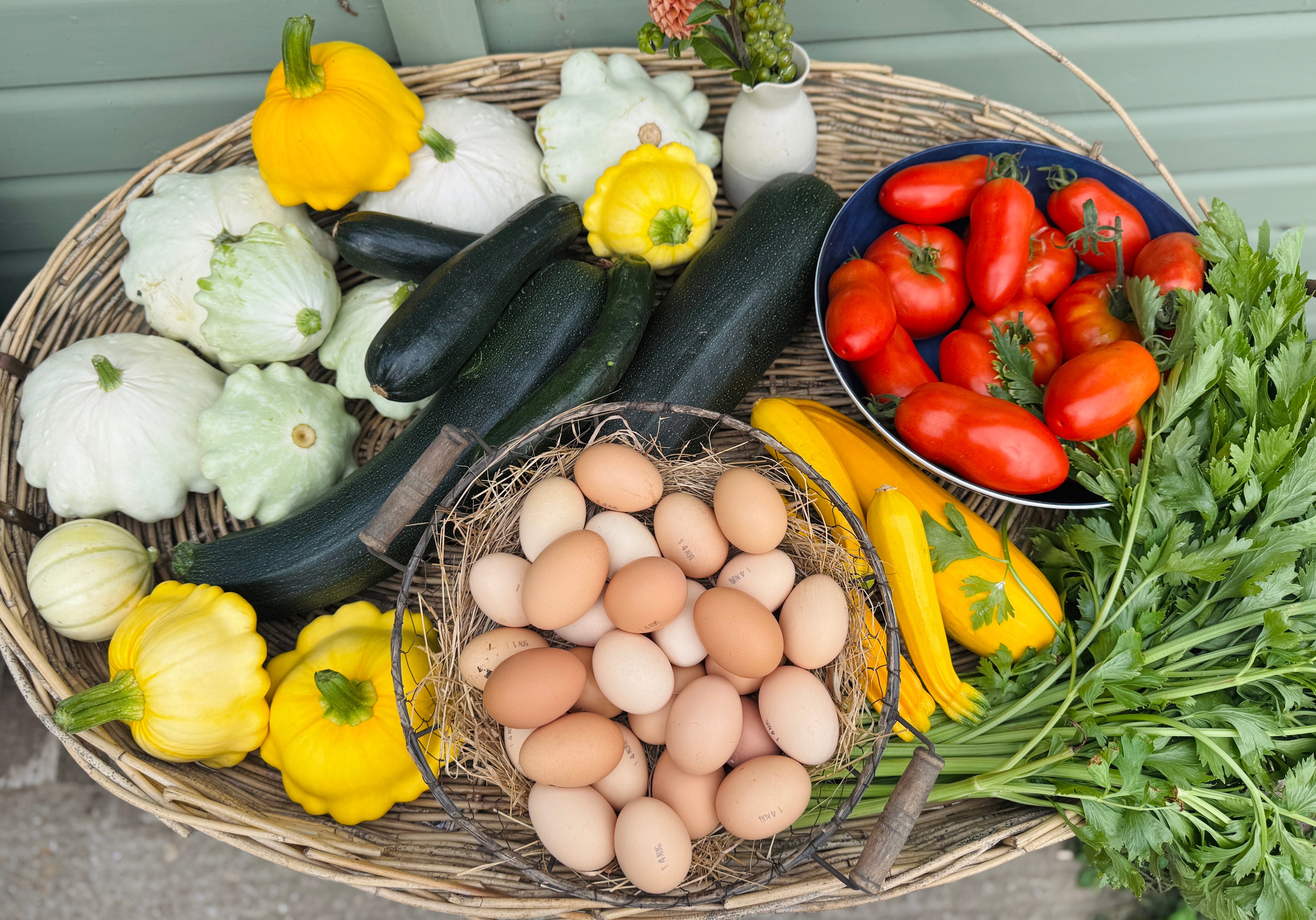 celebration of harvest. Lani Gladwin's flowers, vegetables, salad and fruit growing at Nutbourne is in its prime, sowe have an abundance of pattypan squashes, honeydew melons and sweet juicy tomatoes.