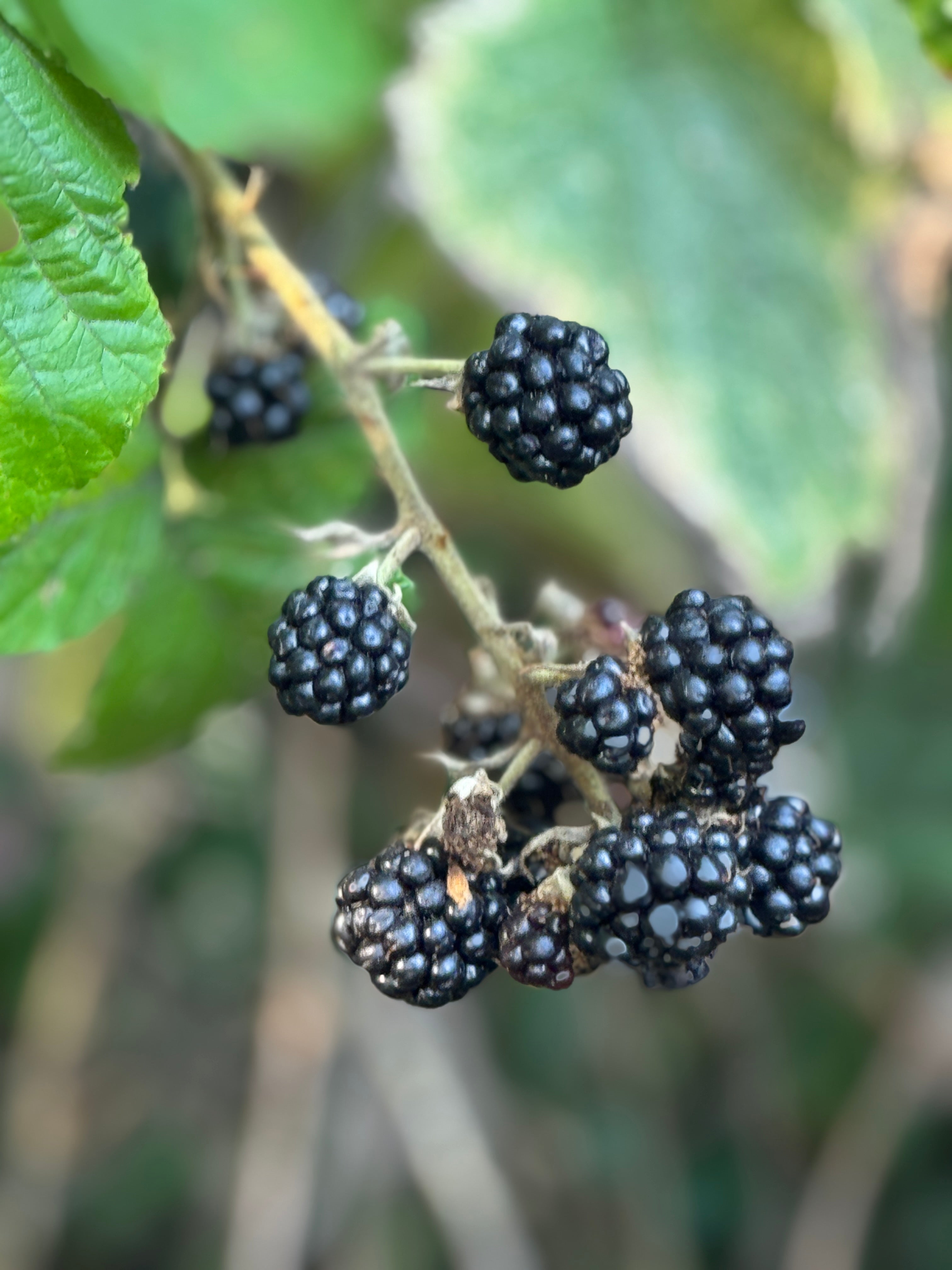 Country walks double in enjoyment when the hedgerows are filled with wild blackberries that are plump and juicy - you can literally gather by the handful. The tell tale is a purple stain round the mouth when you return from dog walking duties. Blackberries have to be our August/September champion to use in both savoury and sweet cooking, or freeze as a treat for the leaner winter months.