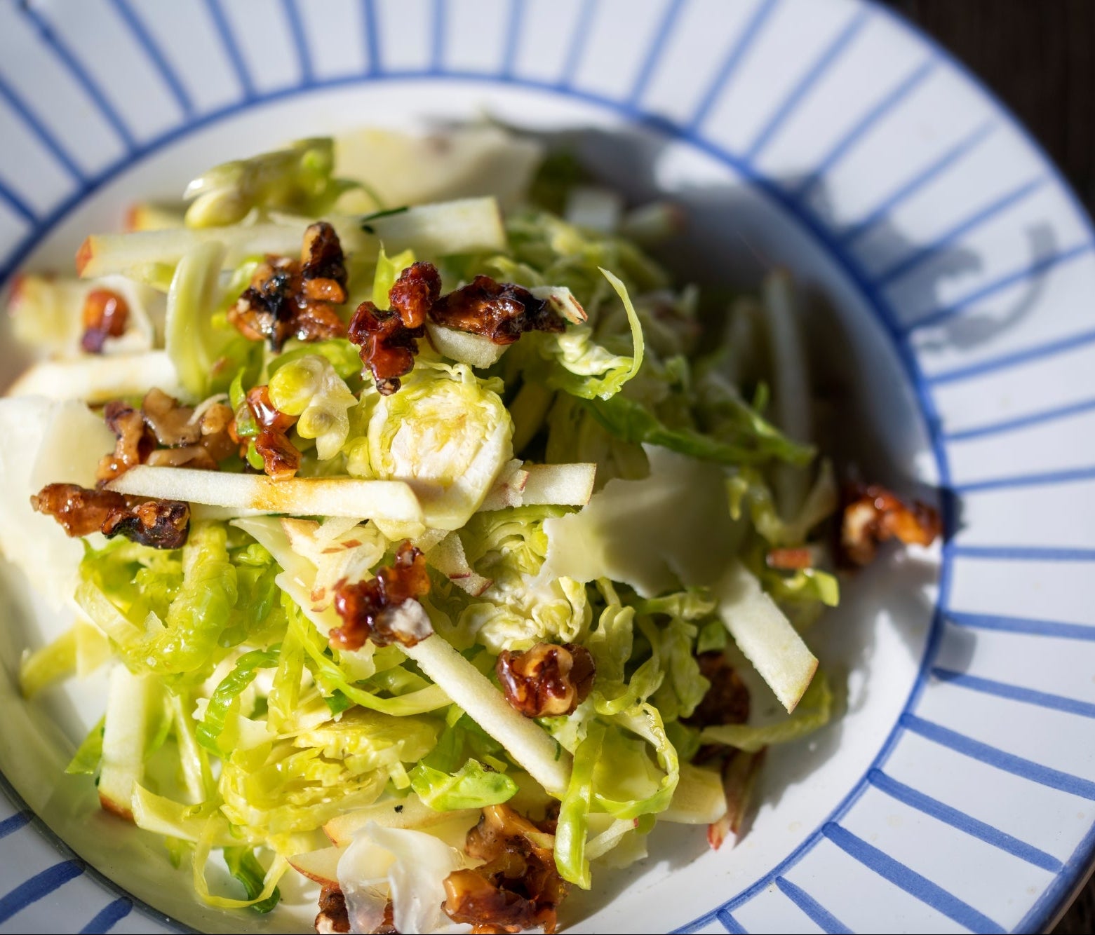 BUT I still insist that a sprout can be a delicious thing - lightly blanched then sautéed with chestnuts, tossed in butter with a sprinkling of crispy bacon and breadcrumbs; or shredded in Oliver’s legendary sprout salad...