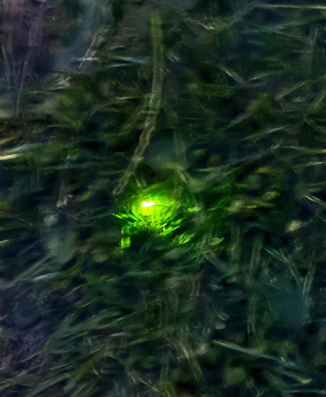 Out with the dogs just before bed I saw a bright greeny-yellow light in the undergrowth well off the beaten track! Investigating further, I discovered a glow worm using all its female charms to attract a mate. We have not seen this for several years - Nutbourne is becoming a haven for wild species.