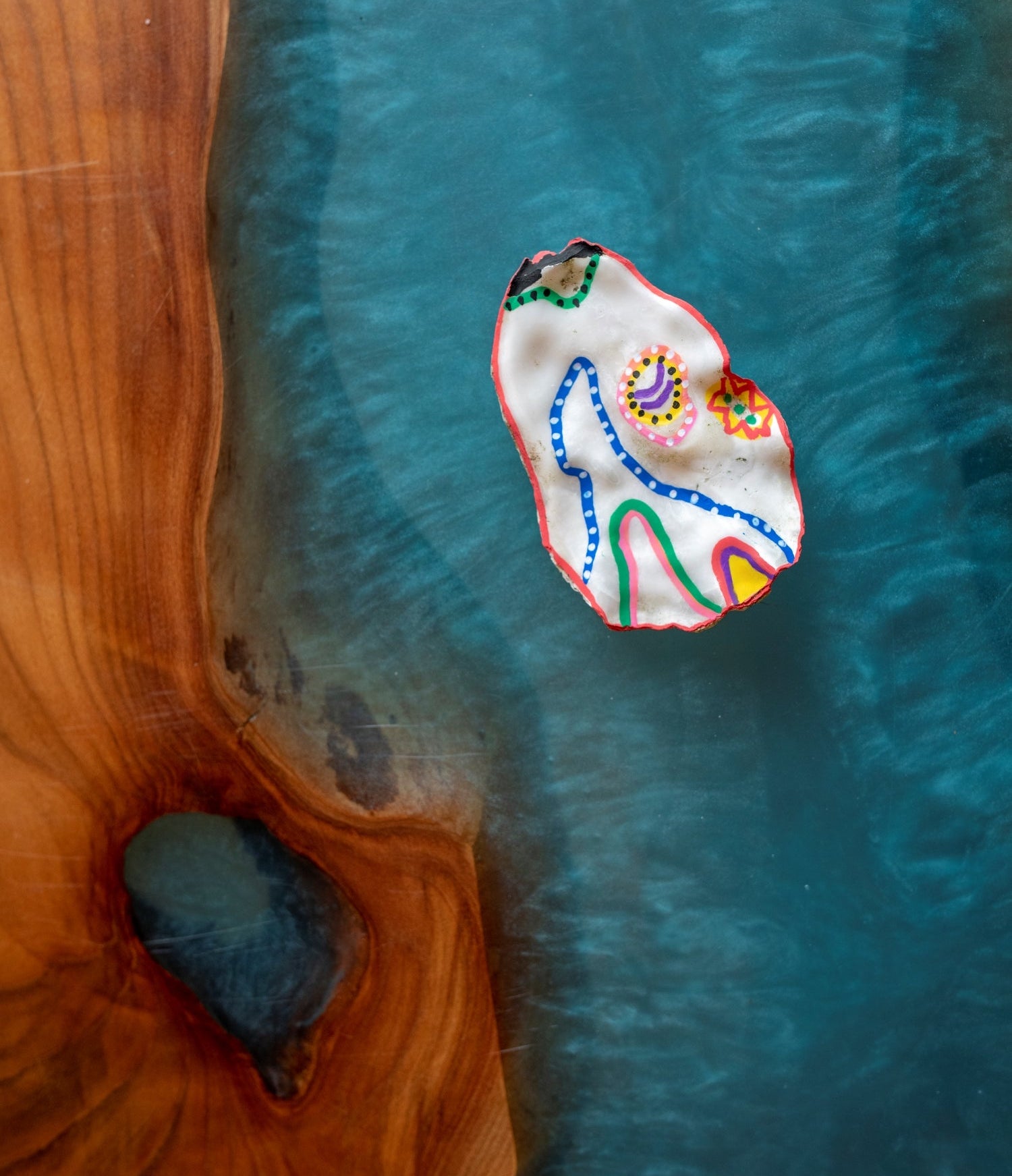For those of you who don’t know Bridget, it may be difficult to understand that refusal is not an option. Daughter-in-laws, friends and grand children were drawn into a new form of creativity in February – freestyle painting on the inside of oyster shells! The garden now has splashes of unexpected colour all year round.