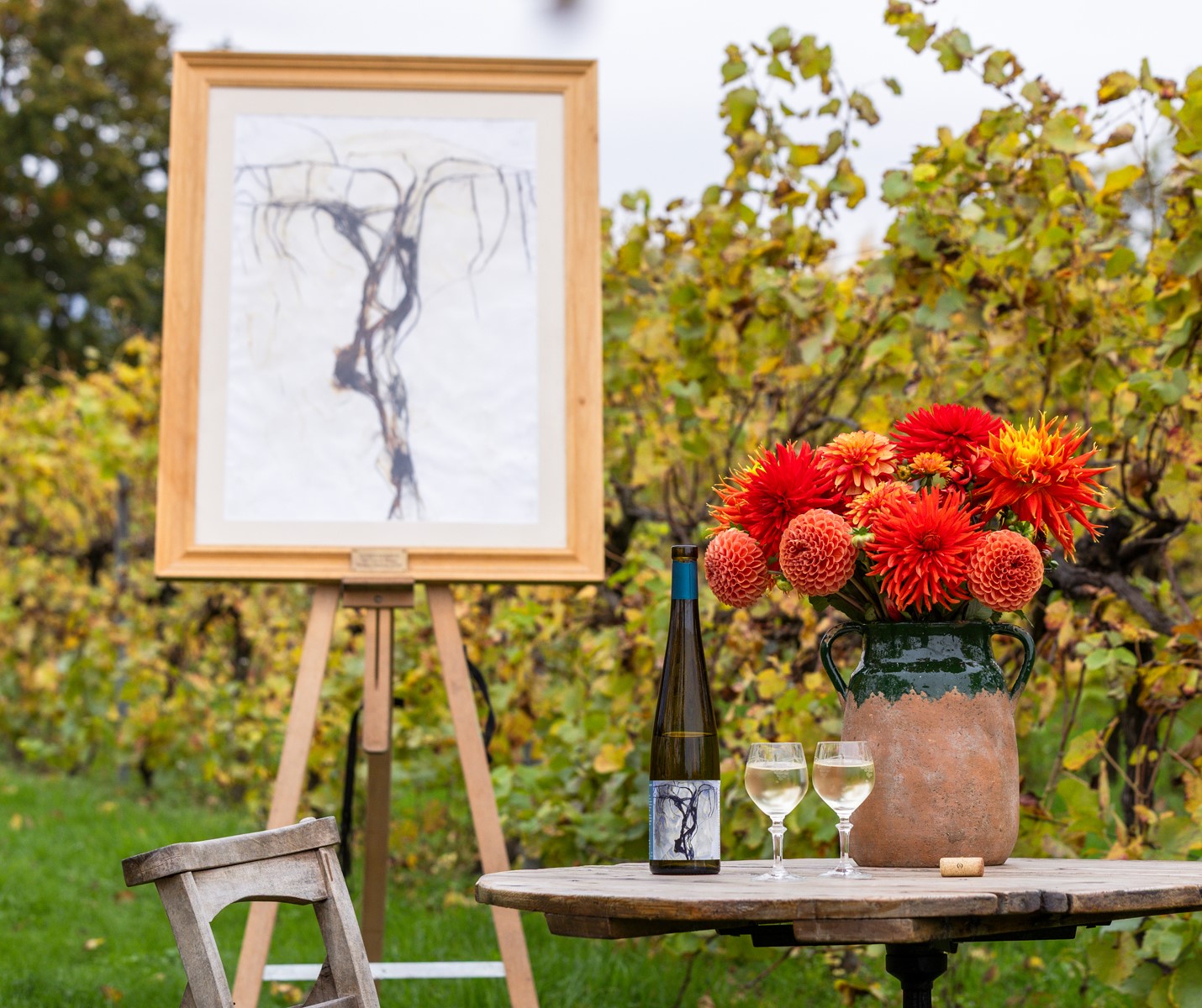 Bridget Gladwin’s painting of “The Vine in Winter” is always featured on the label of our iconic Sussex Reserve blend. To