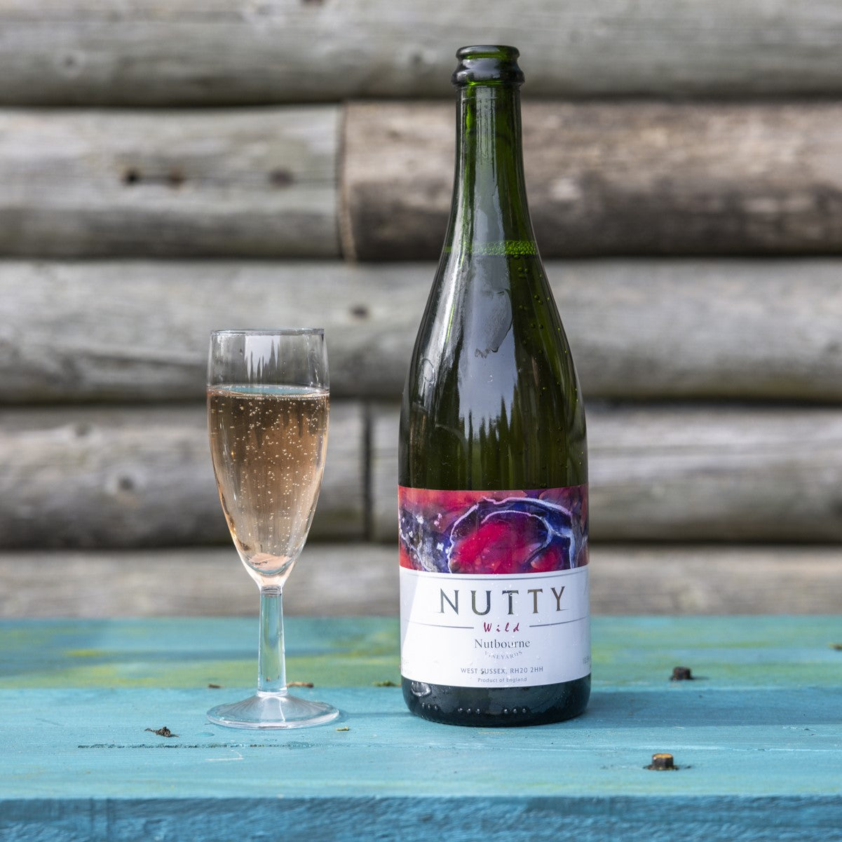Nutty Wild is a light and joyous fizz with a pale pink hue, from the second pressing of Pinot Noir with Chardonnay. Bursting with wild strawberries and raspberries, it is delicate and tangy. A lower alcohol sparkling wine at 10.5%, this is a young wine with fine mousse, made by classic method bottle fermentation.