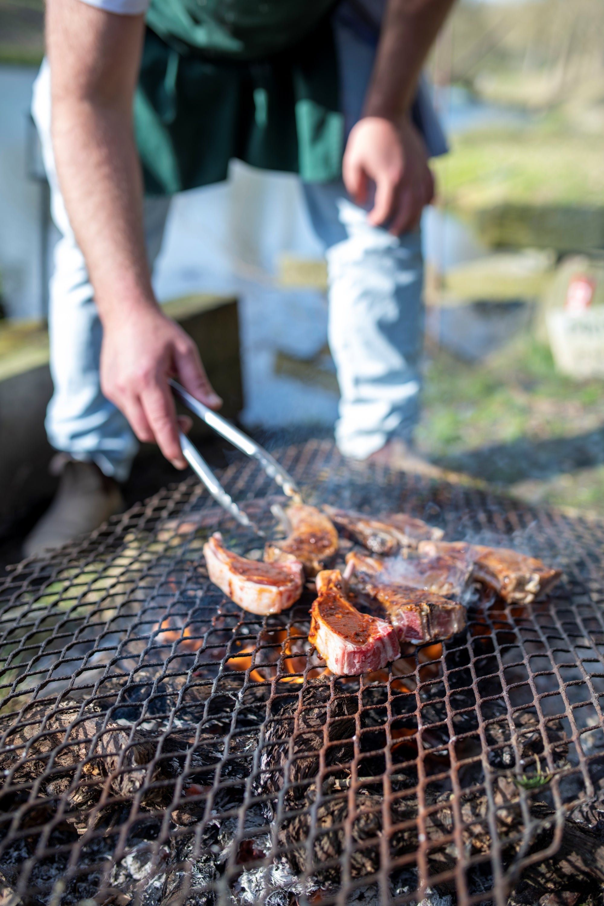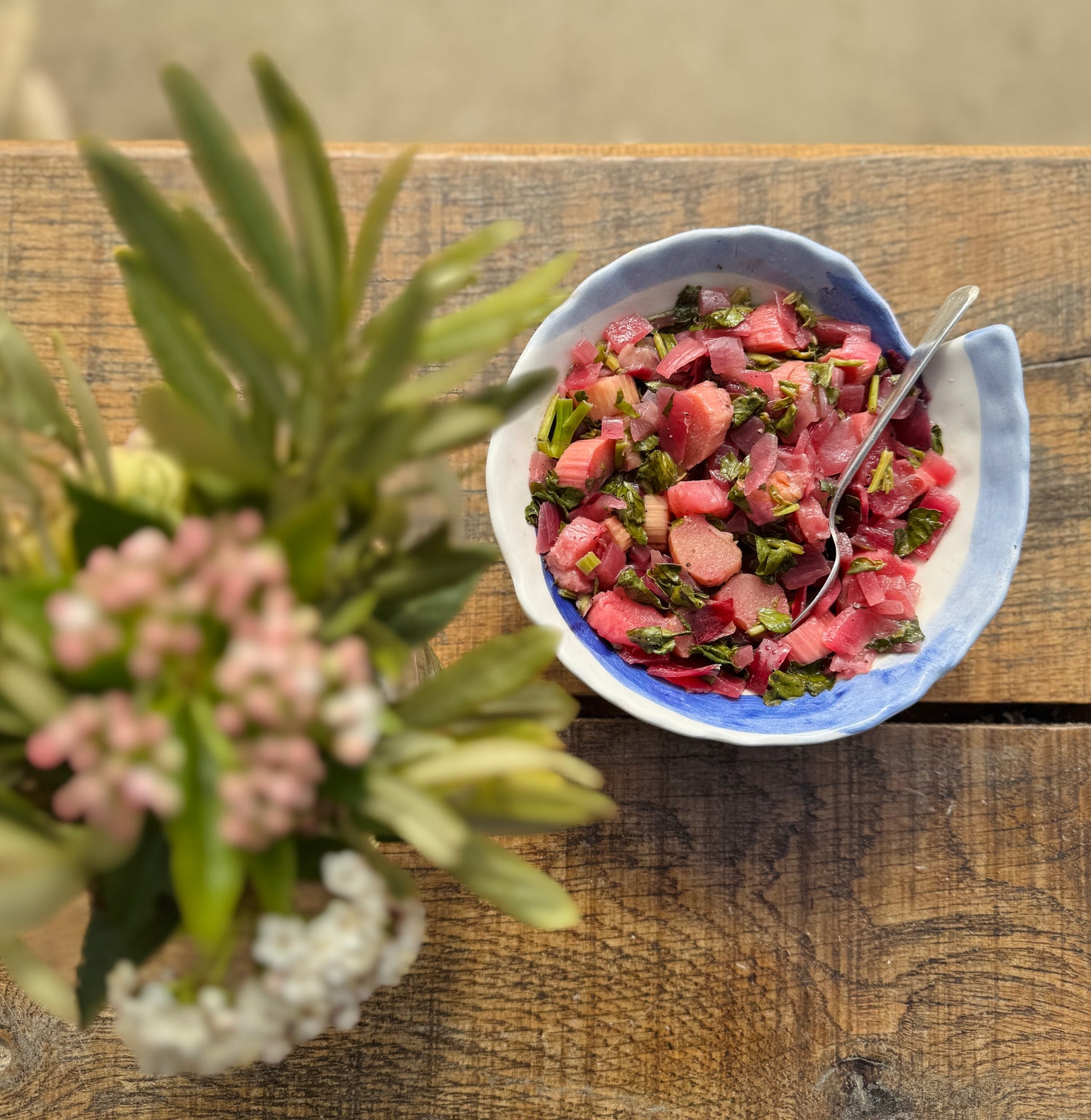 Never too early to start the season of outdoor cooking, after all this hard work the three Gladwin brothers have been barbecuing lamb cutlets down by the lake. Oliver made a truly delicious salsa from Rhubarb & Fresh Foraged Herbs to go with it.
