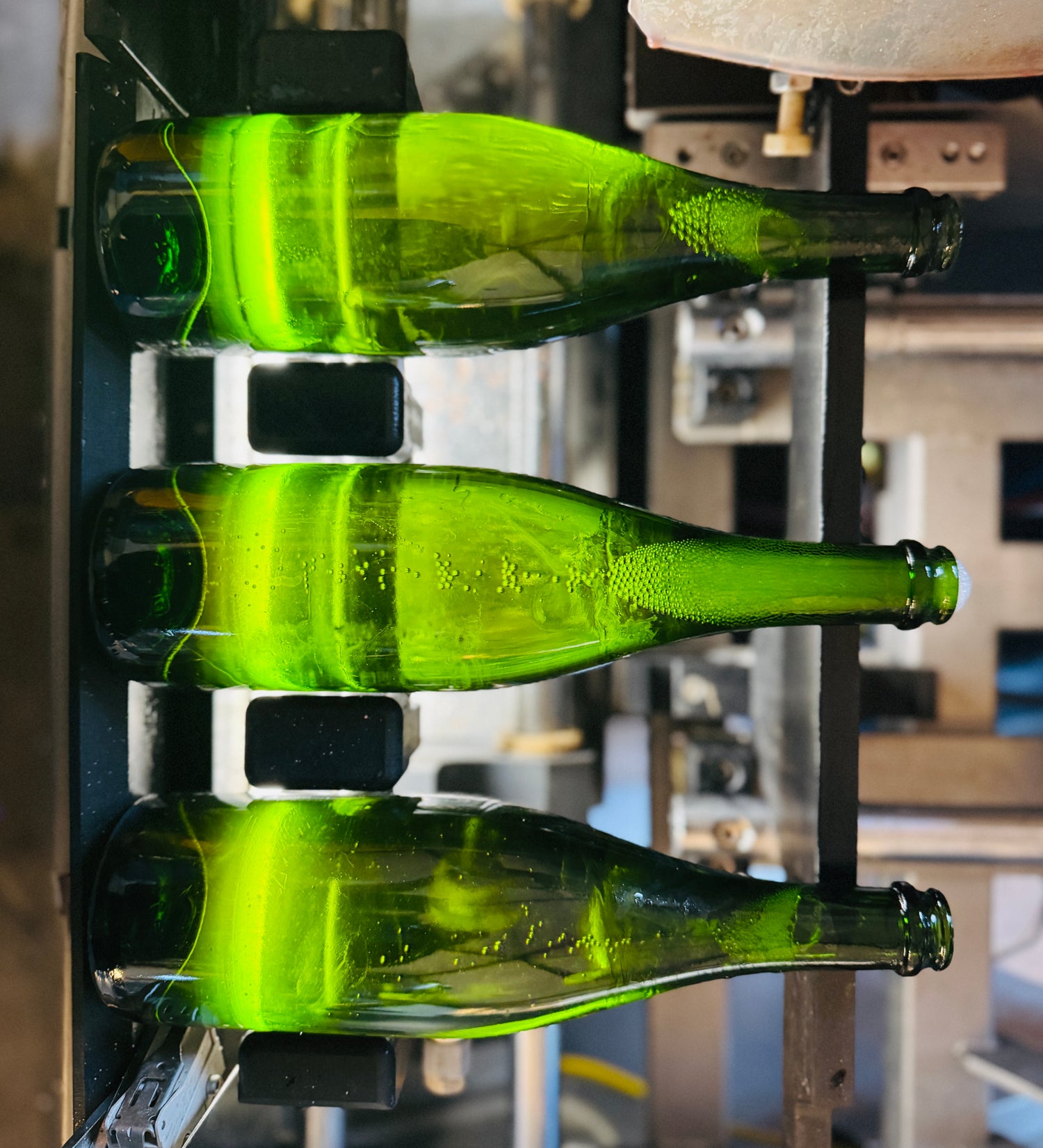 The team is hand finishing 500 bottles of Nutty Vintage each week at the moment. Our traditional method sparkling wine is matured in bottle, underground for 4 years on its lees before being “riddled”, then “disgorged” to remove the sediment. It then receives the addition of a little “dosage” (if I told you our secret recipe I would have to…). Finally the finished wine is corked, wired and labelled, ready to serve.