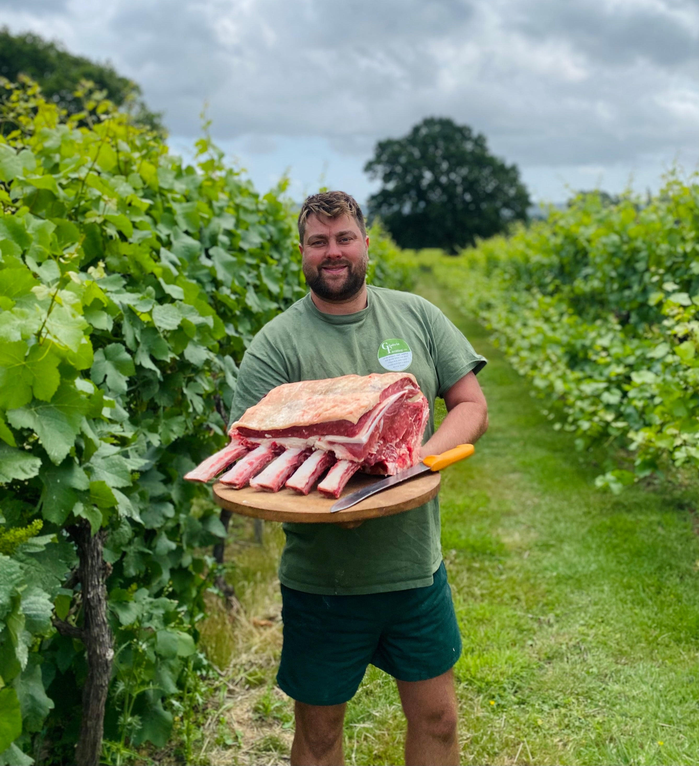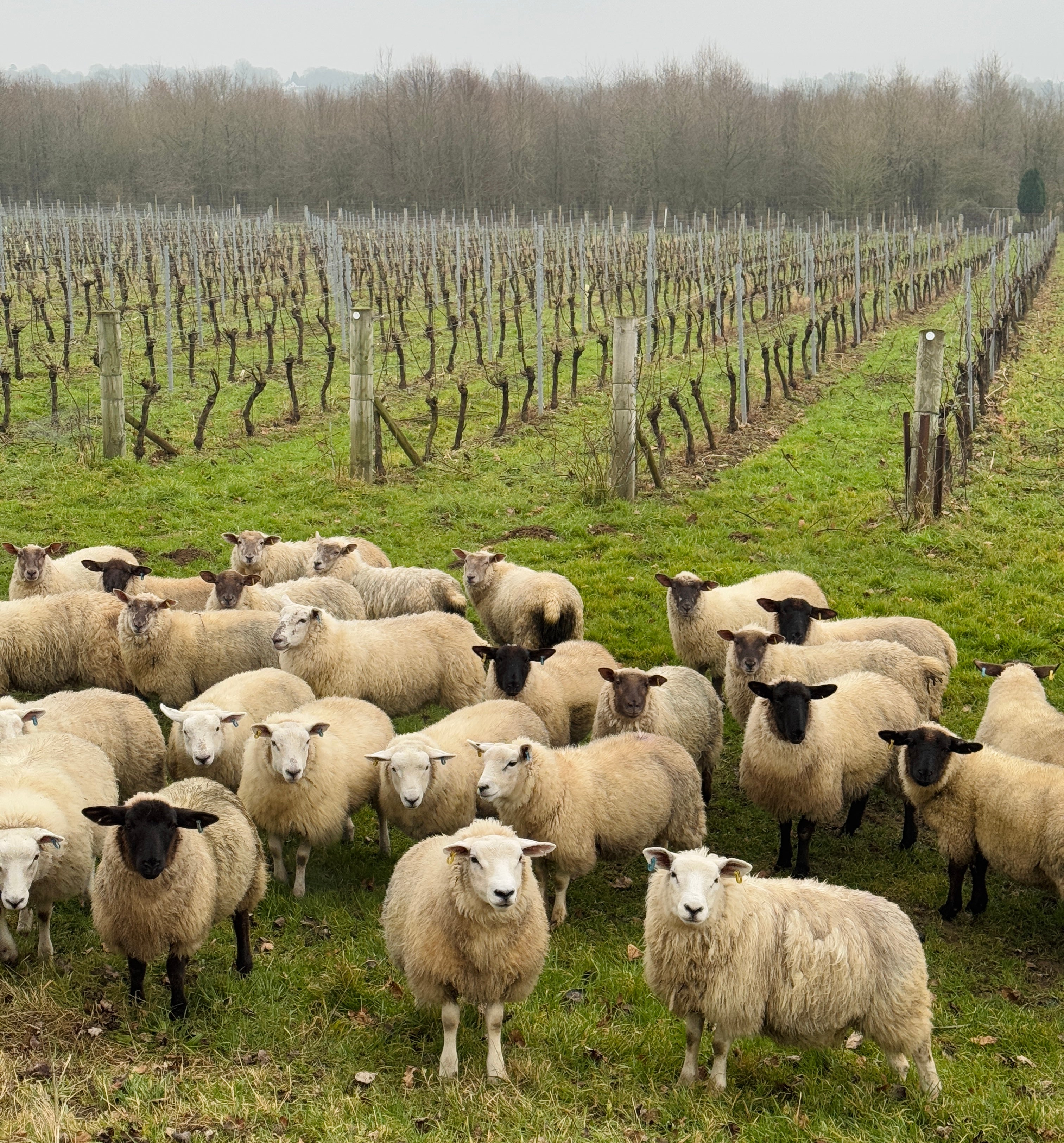 Alongside the vines, Gregory Gladwin hand rears cattle and sheep. His beef is from Simmental cows crossed with Sussex or Angus bulls - the animals graze on the water meadows at Amberley in Summer, then return to the farm in the Winter months. The sheep graze among the vines and even assist with leaf-stripping during the growing season.