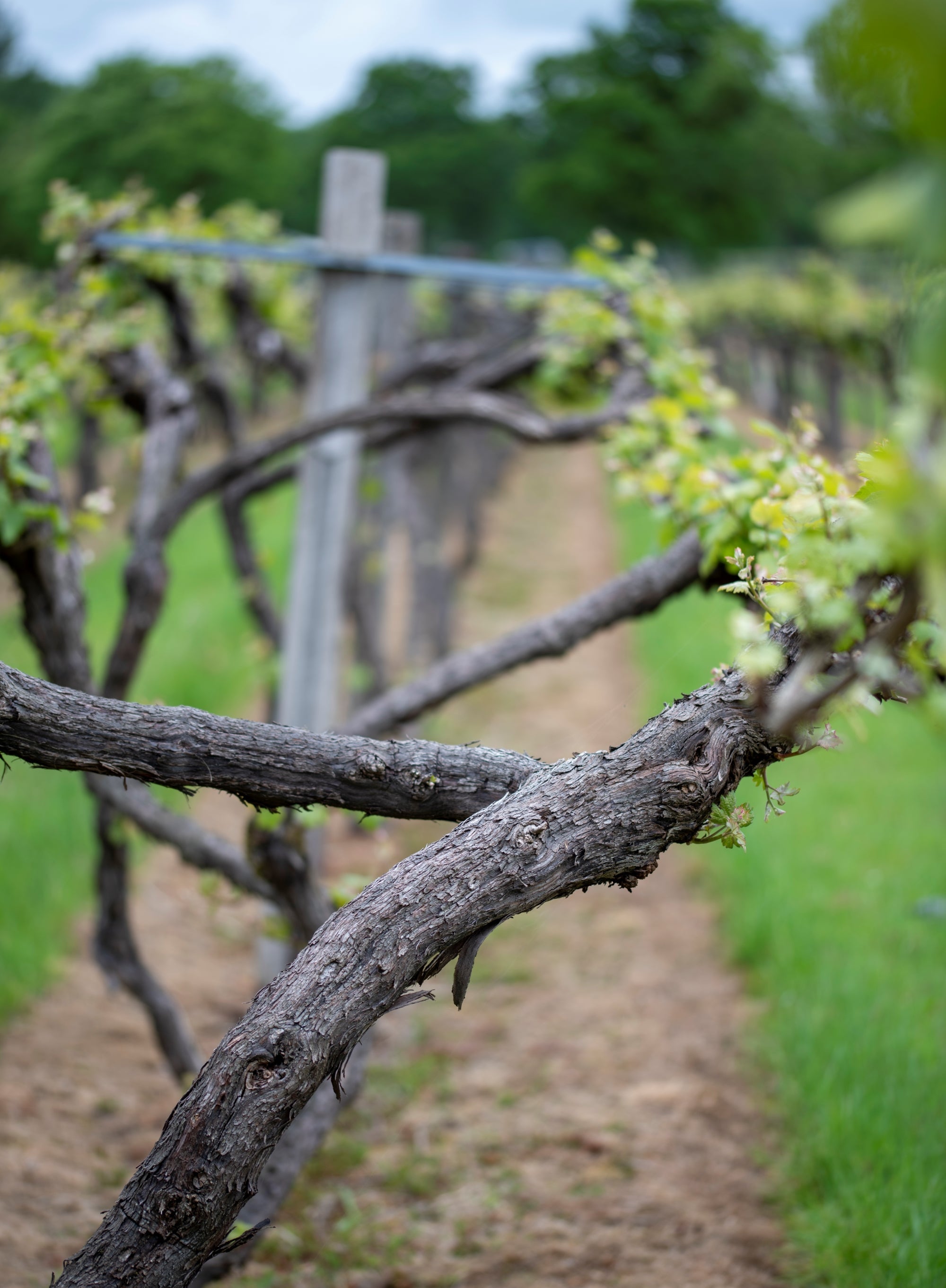 Across 24 acres, we use three different trellising systems – Guyot, Scott Henry and Geneva Double Curtain. The vines are tended throughout the year, pruned by hand over Winter and then carefully trained, trimmed and nurtured during the Summer months before harvest in September or early October.