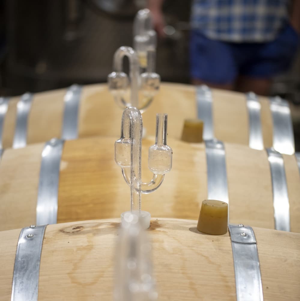 We have a barrel room for fermentation in oak and an underground cave for maturation of vintage sparkling wine.